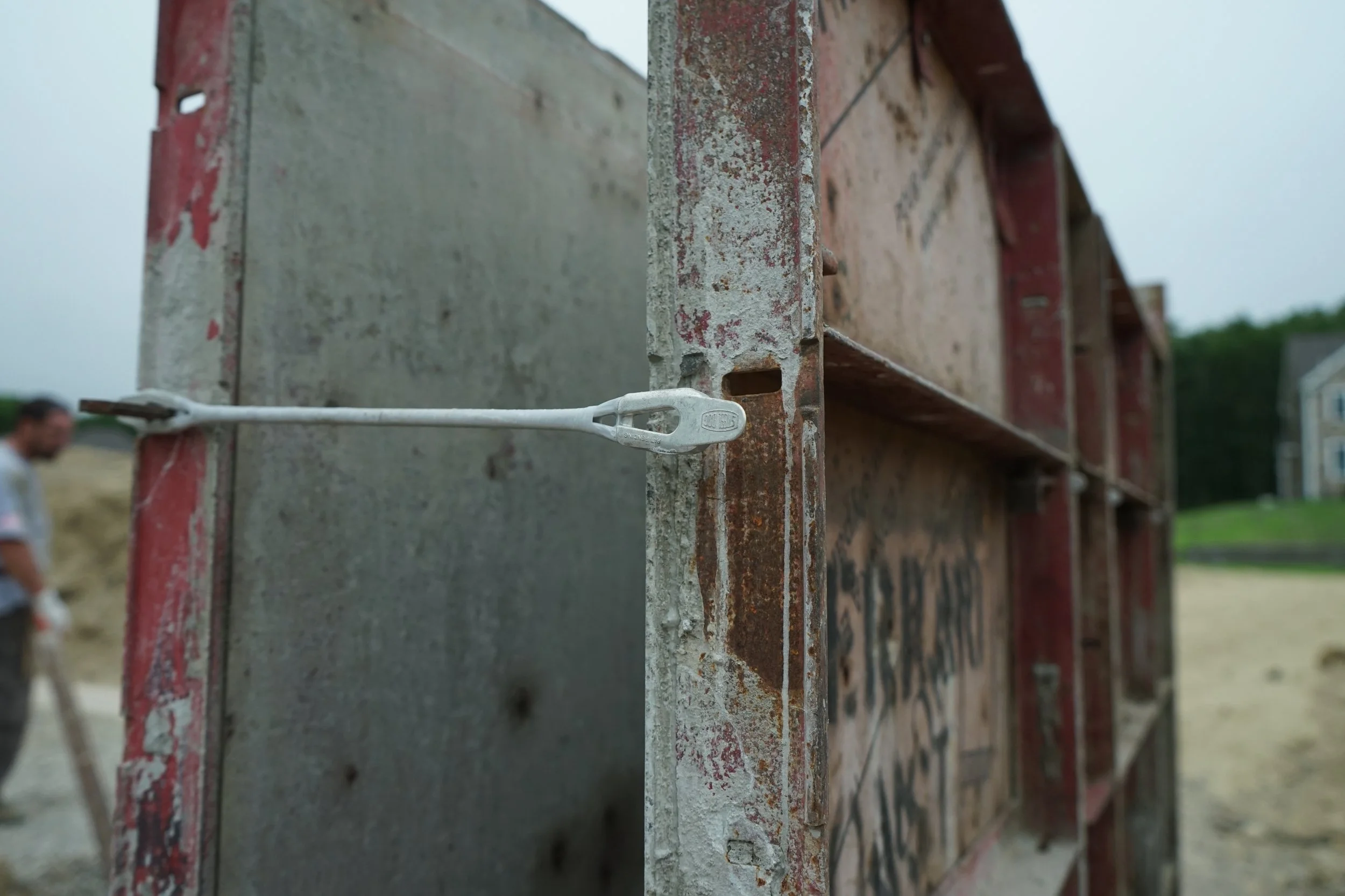One attempt at offering a fiberglass form tie utilizes smooth fiberglass rod. Using this rod requires custom assembly of each individual tie. An expensive “gripper” is needed on either side which must be clamped down onto the rod to hold the forms in place. An internal spreader clip and exterior baring plate is also required depending on the form system you are using. At Steel Dog, we knew we could do better. As an industry first, we engineered the very first fiberglass tie for handset forms.