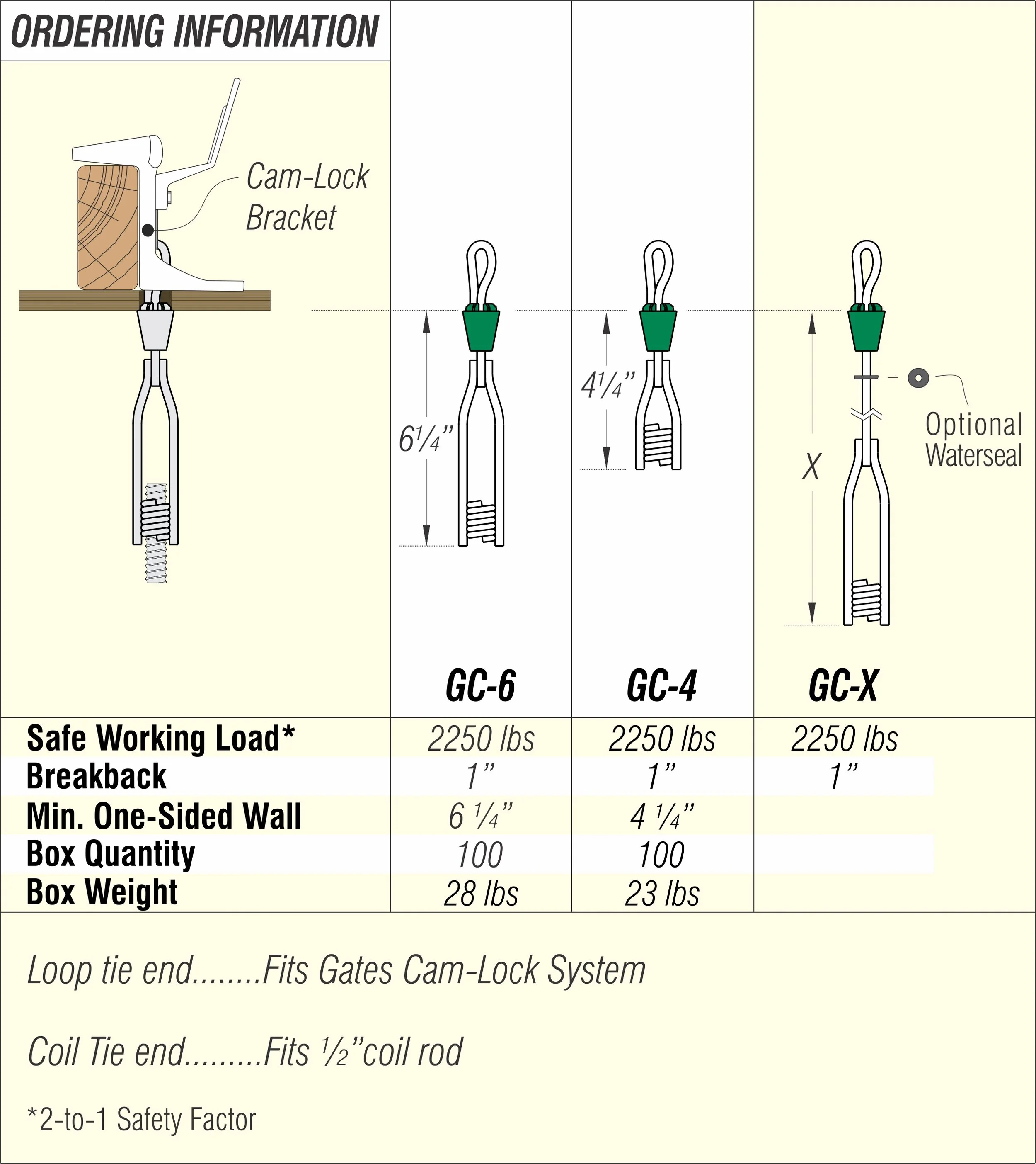 Cam-Lock Loop-Coil™ Ties allow you to make adjustable-length ties from off-the-shelf components. thread two back-to-back onto a length of standard ½”coil rod for adjustable-length ties for 8” walls and up.